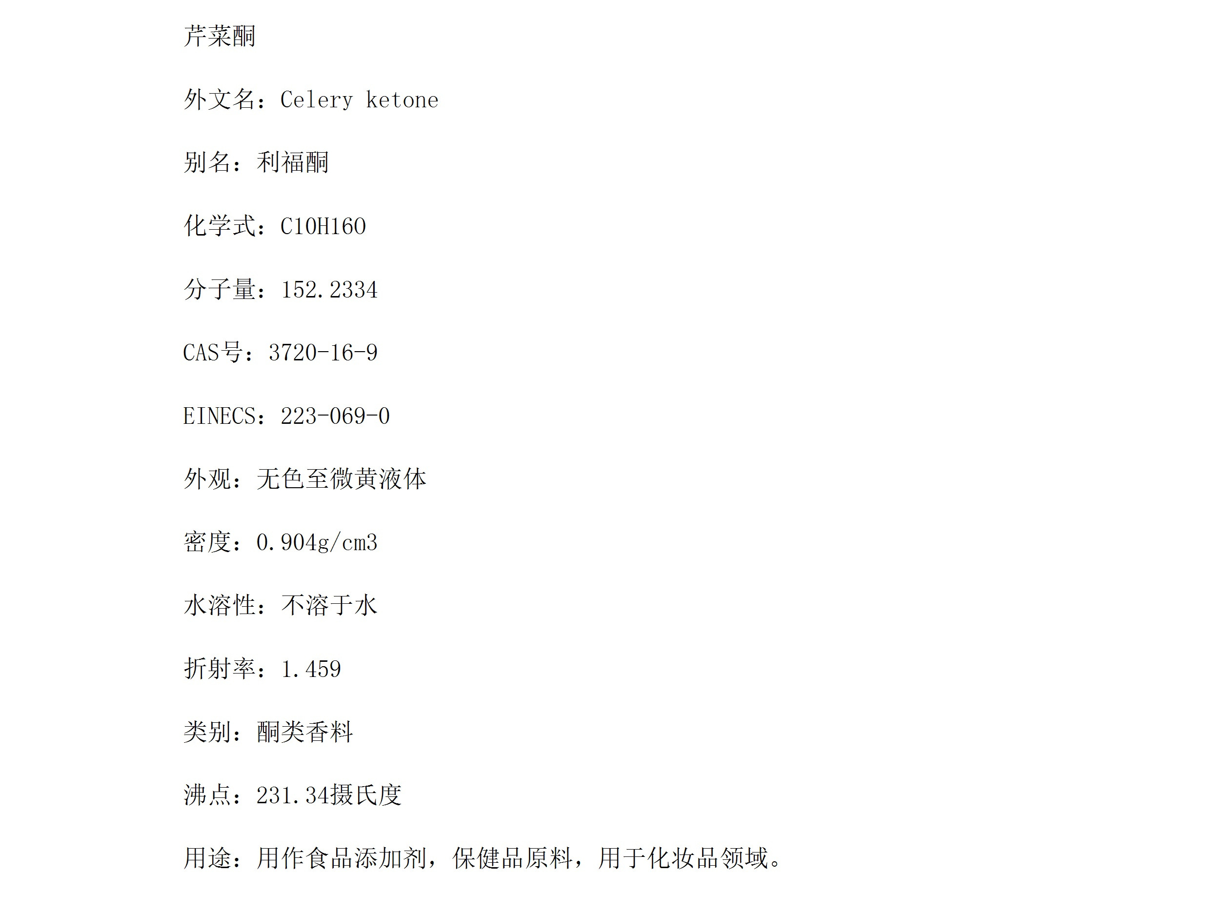 芹菜酮 利福酮 无色液体 酮类香料 食品添加剂 化妆品