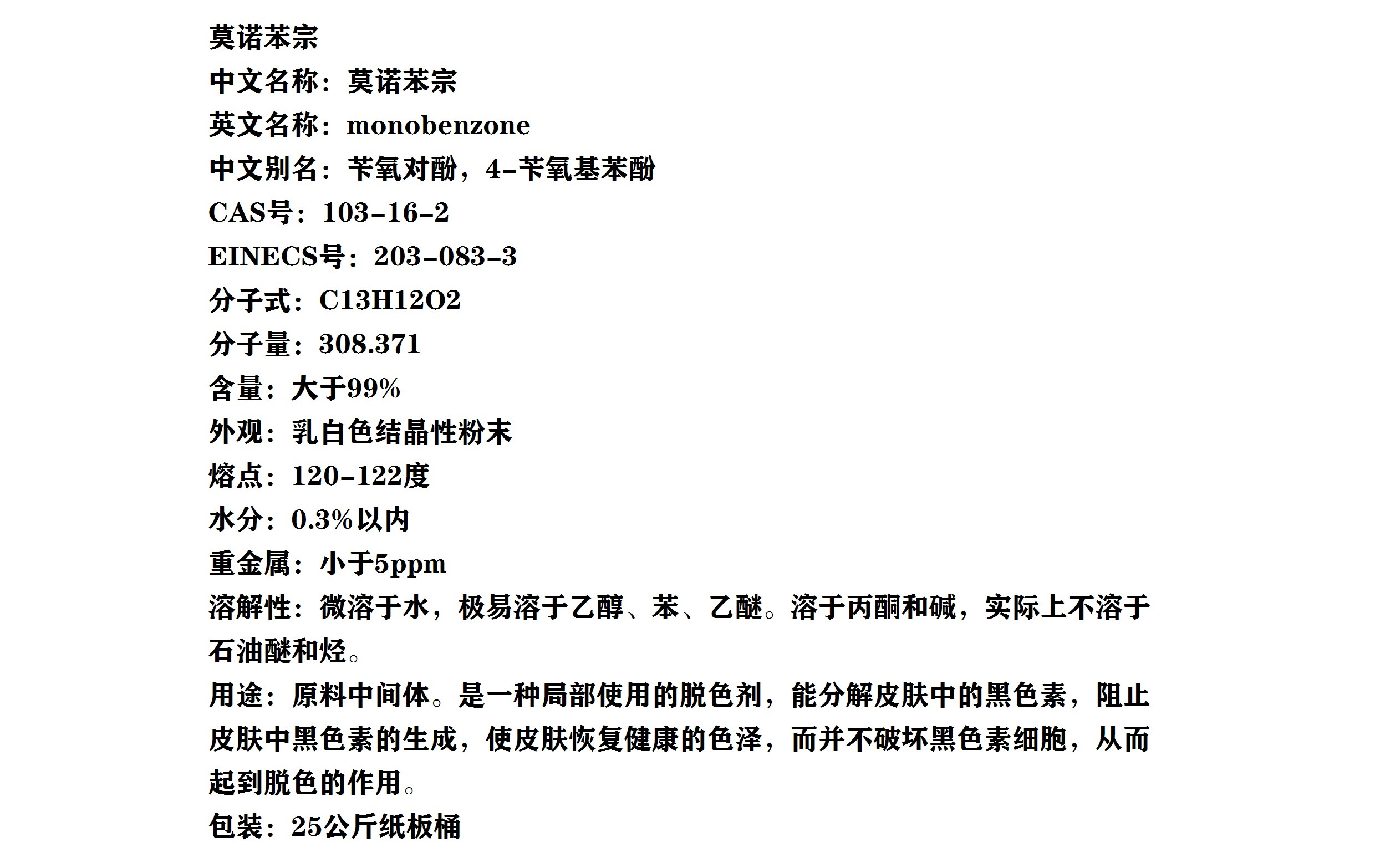 莫诺苯宗 苄氧对酚 日化级局部使用的祛斑剂原料