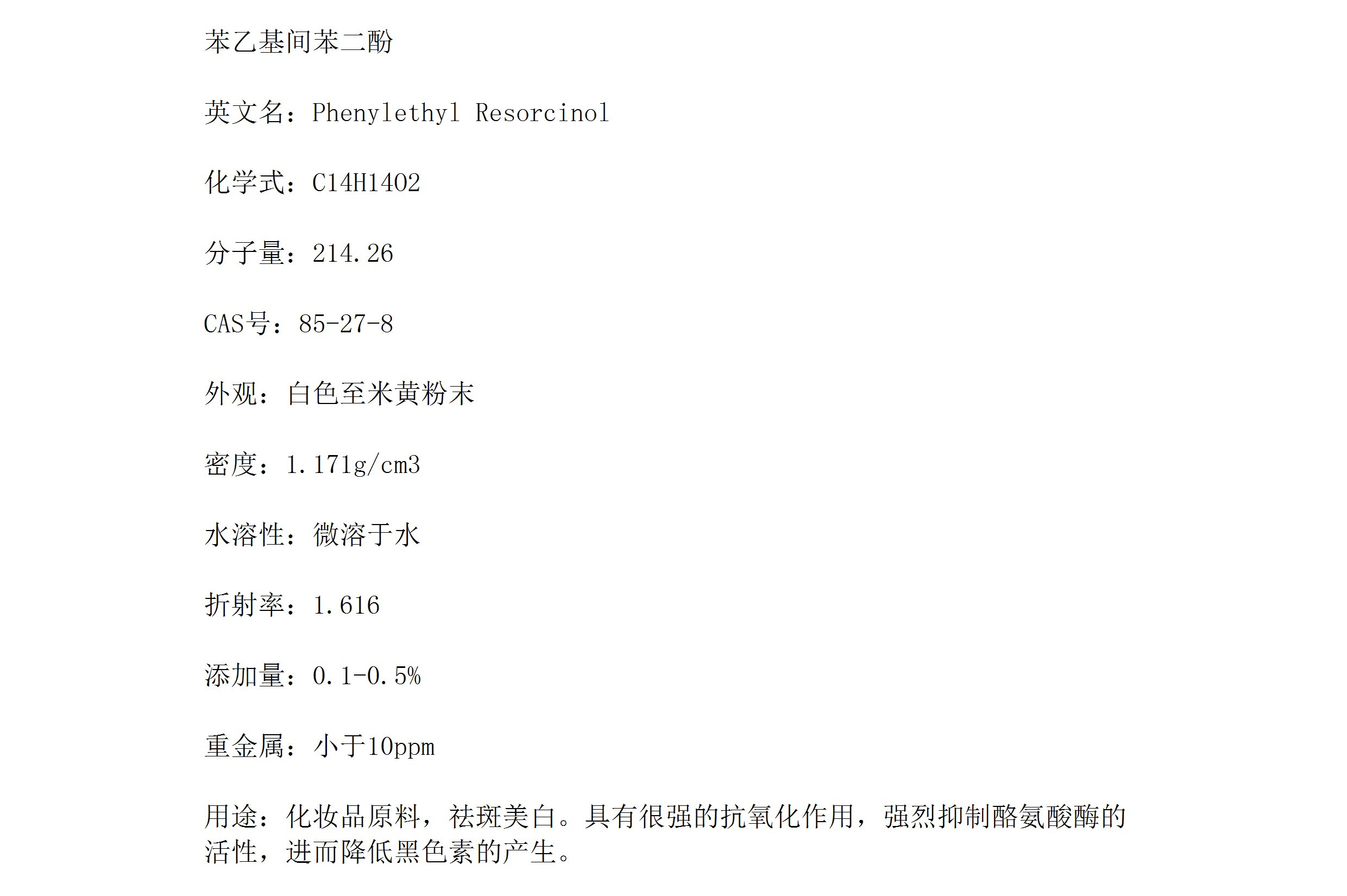 苯乙基间苯二酚 白色至米黄粉末 祛斑美白化妆品原料