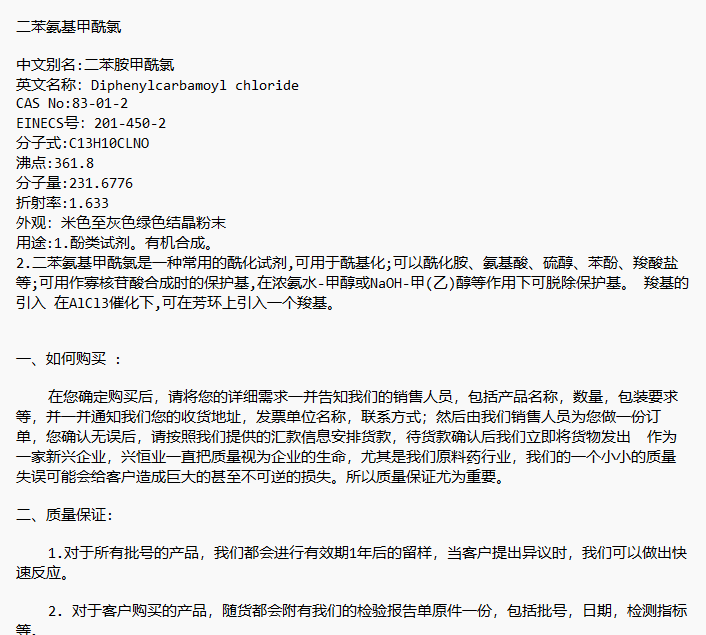 CAS No:83-01-2 二苯氨基甲酰氯 酚类试剂。有机合成 兴恒业科技