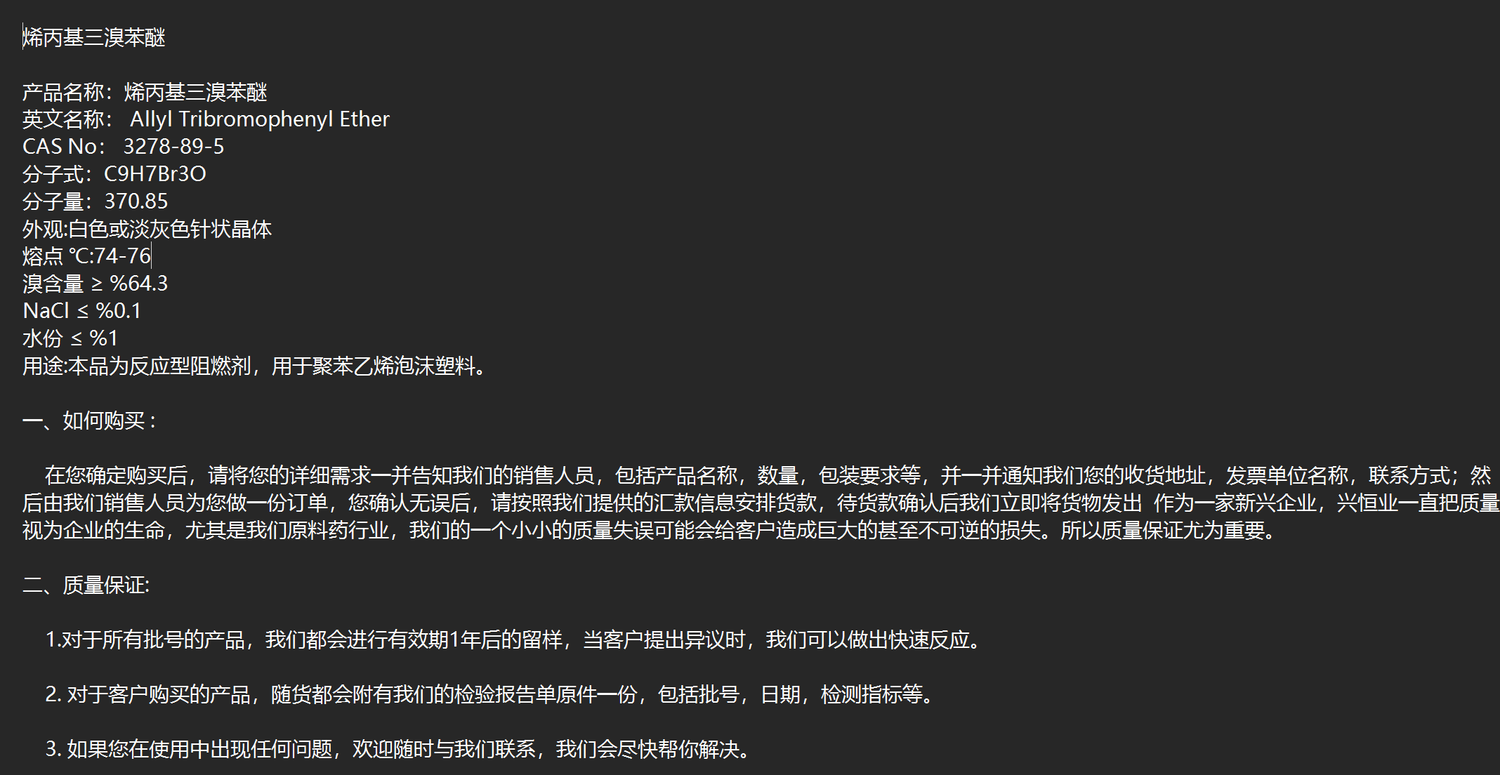 烯丙基三溴苯醚 反应型阻燃剂,聚苯乙烯泡沫塑料 CAS 3278-89-5