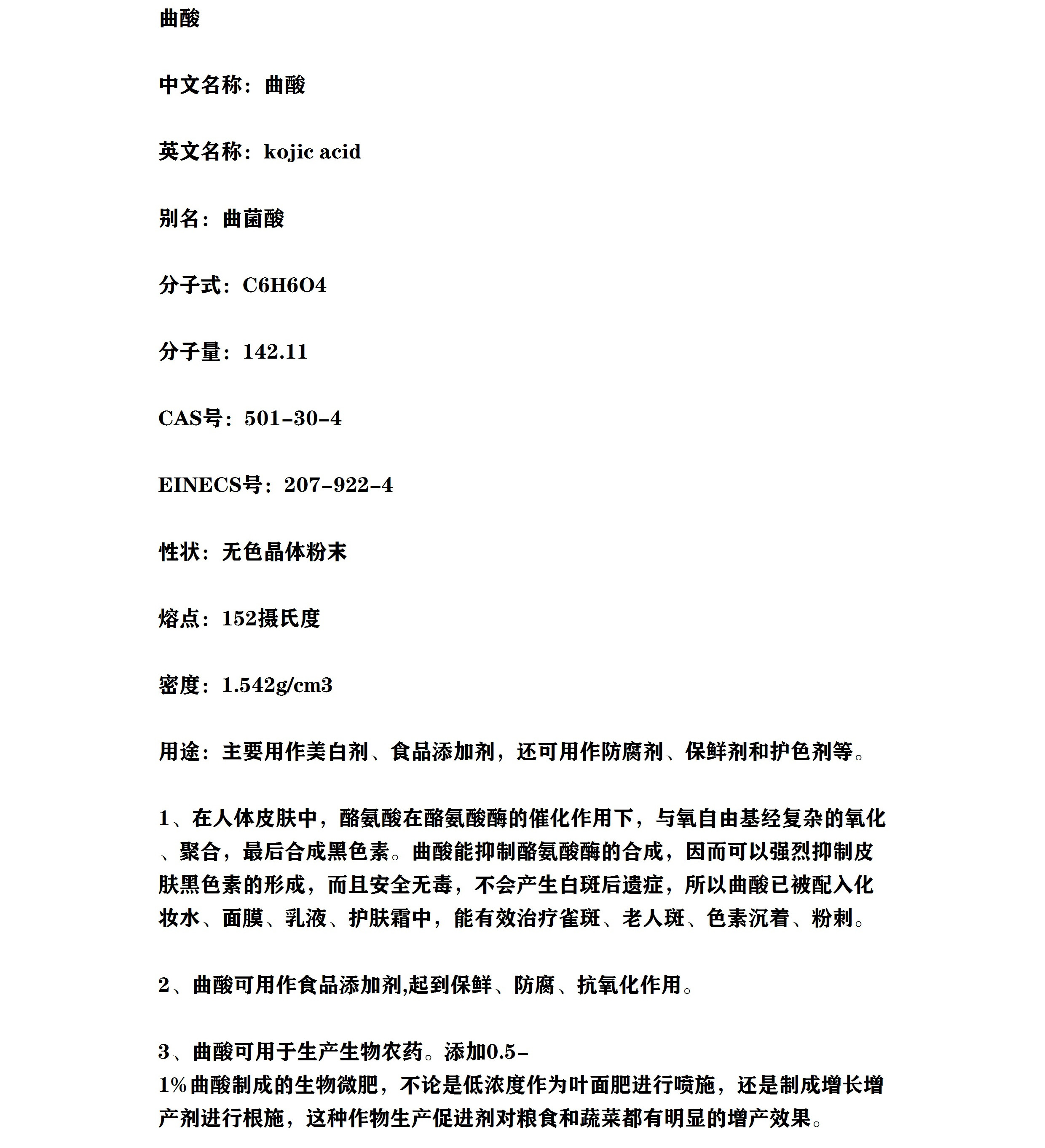 曲酸 化妆品级99.5%含量 用于祛斑美白化妆品中