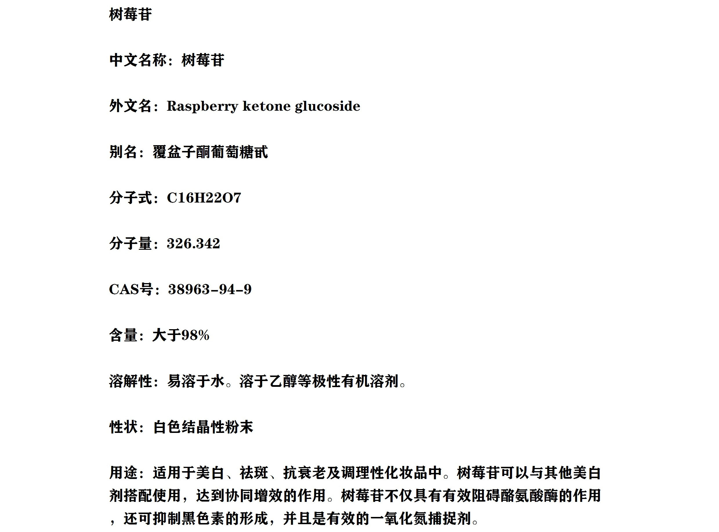 树莓苷 适用于高级美白、祛斑及调理性化妆品中 CAS:38963-94-9