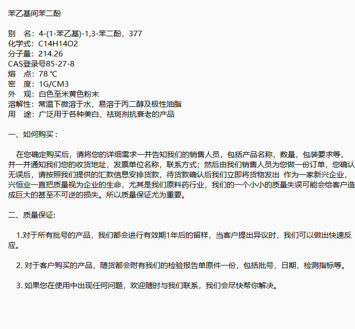 CAS登录号85-27-8 苯乙基间苯二酚 用于各种美白、祛斑剂抗衰老产品