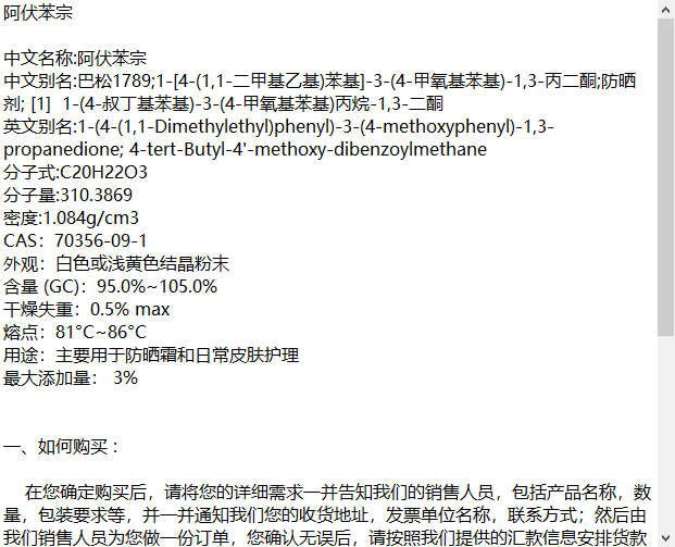 CAS:70356-09-1 阿伏苯宗 用于防晒霜和日常皮肤护理
