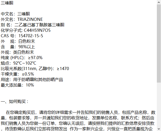 CAS 号:154702-15-5 三嗪酮 用于防晒霜和其他防晒产品 兴恒业科技
